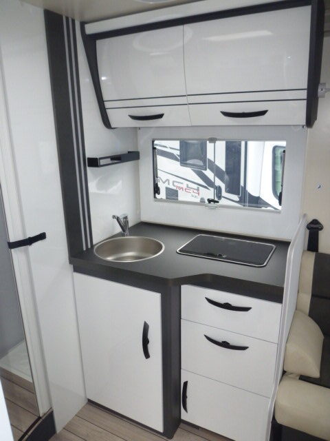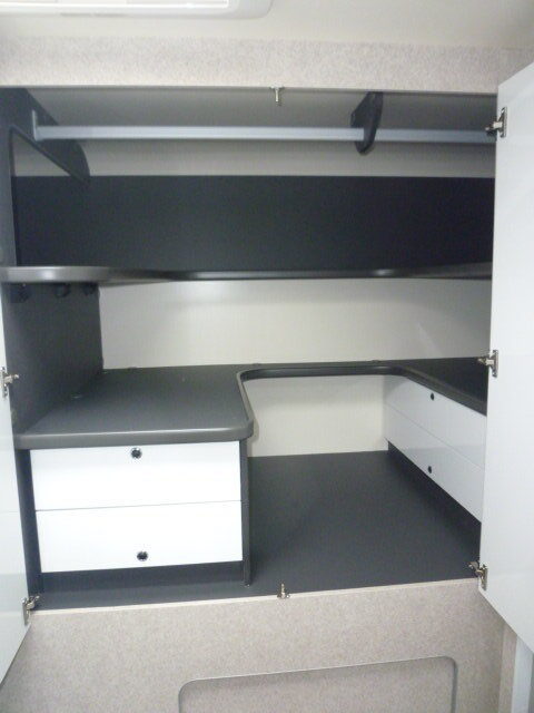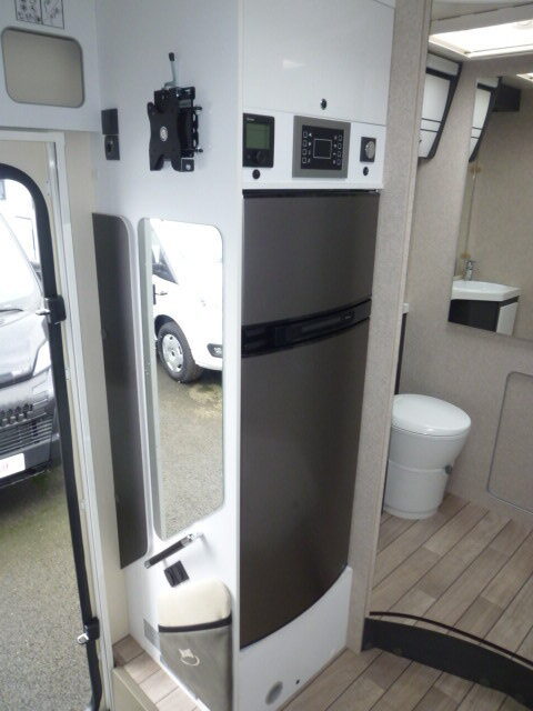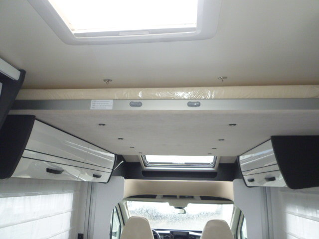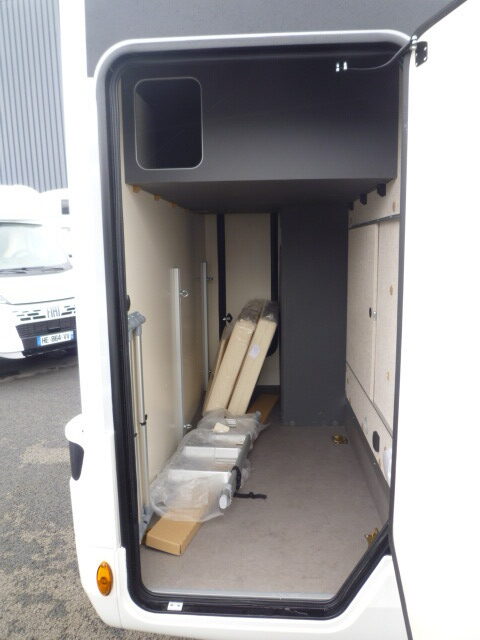 - Disposition : Cuisine en L, Douche indépendante, Grande soute, Lit central, lit pavillon, Salon avant banquettes face à face, Salon avant sièges pivotants, WC Cassette