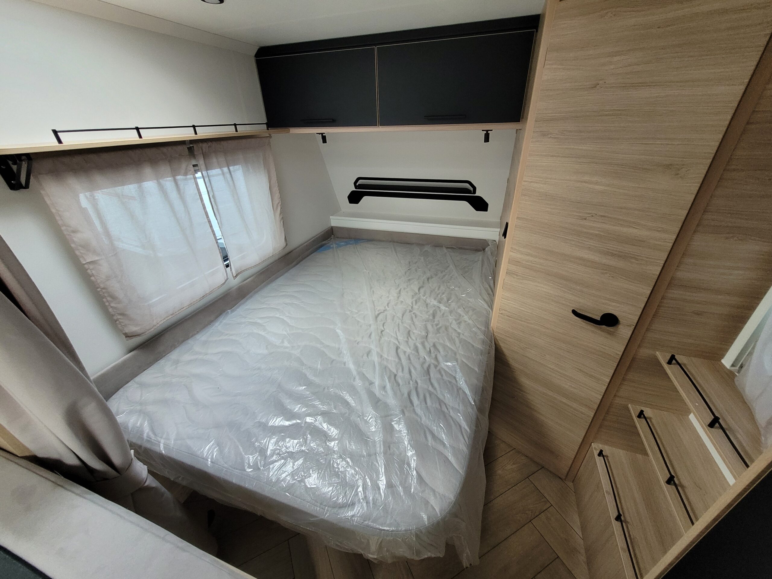 - Disposition : Bac de douche, Cabinet de toilette avec lavabo, Cuisine en bout, Dînette milieu, Lit avant central, Lit dînette, WC cassette