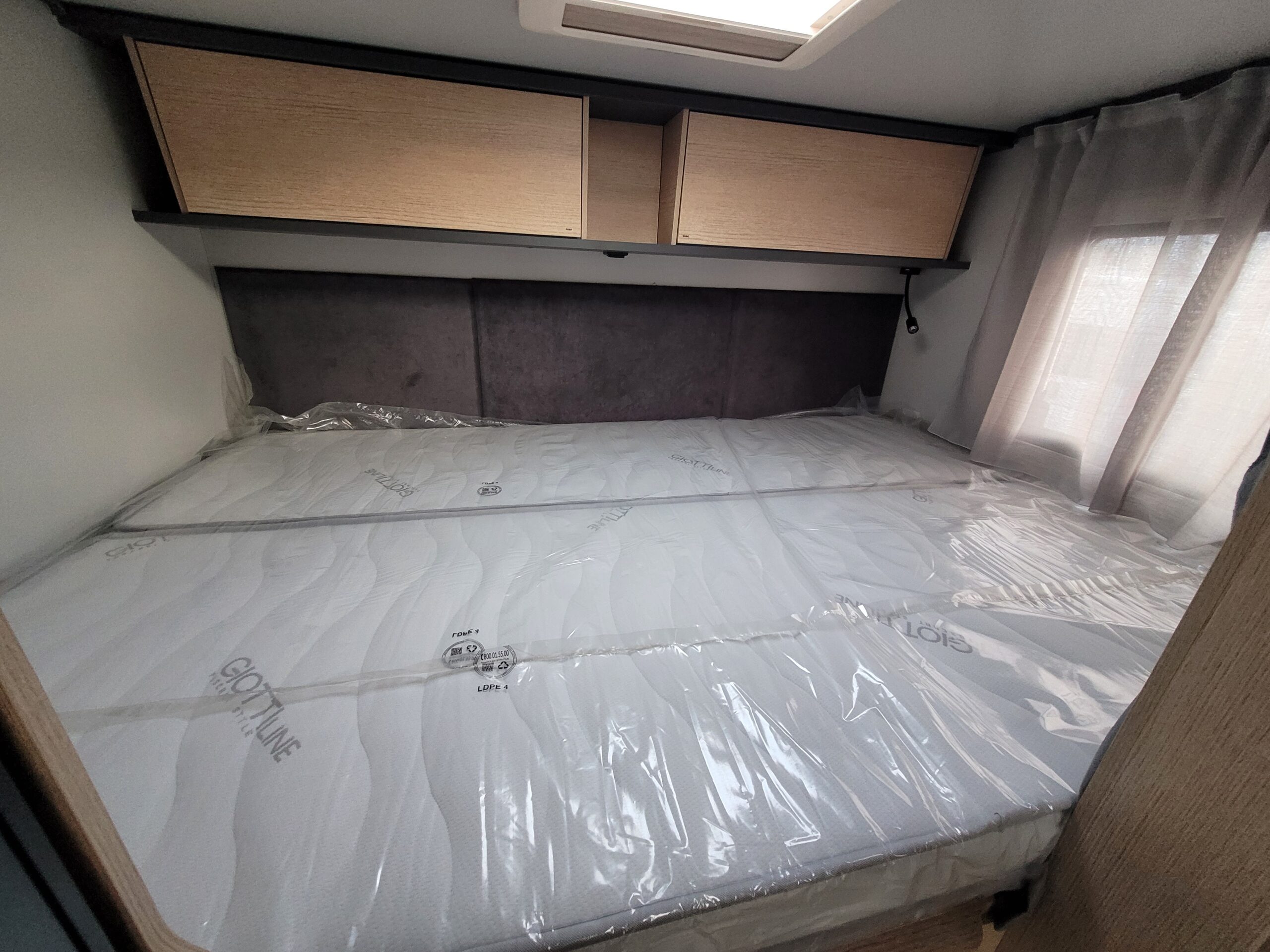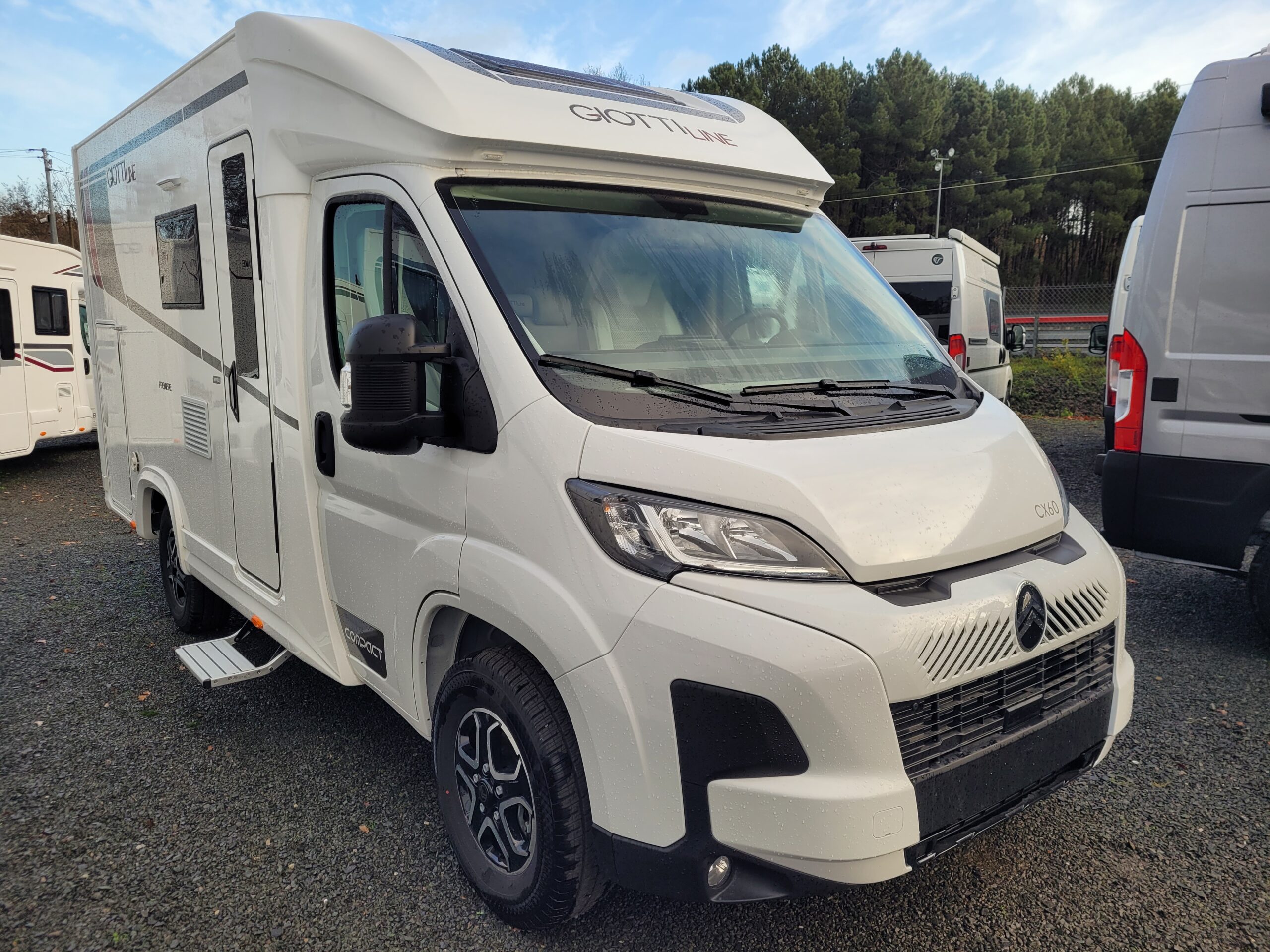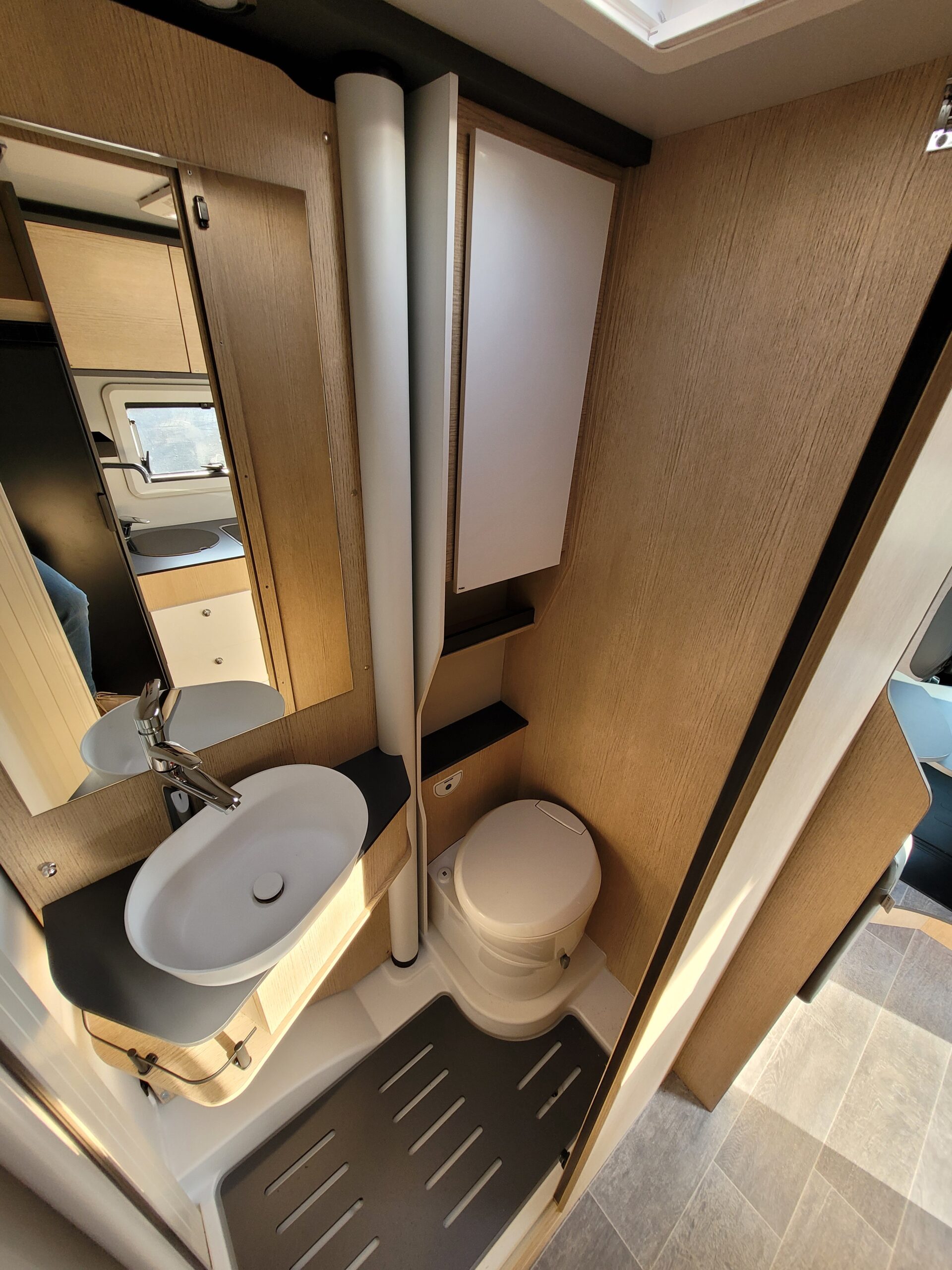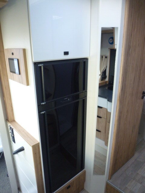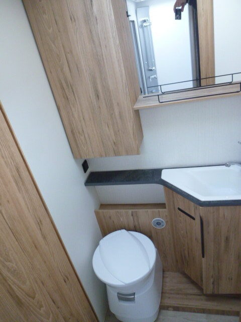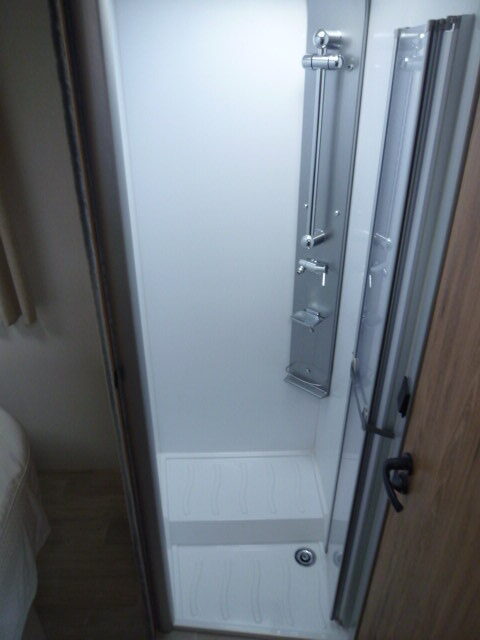 Cuisine en L, Douche indépendante, Grande soute, lit jumeaux, lit pavillon, Salon avant banquettes face à face, Salon avant sièges pivotants, WC Cassette.