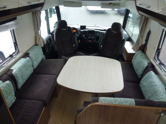 - Disposition : Cuisine en L, Douche indépendante, Lit central, lit pavillon cabine, Salon avant sièges pivotants, Soute, WC Cassette
