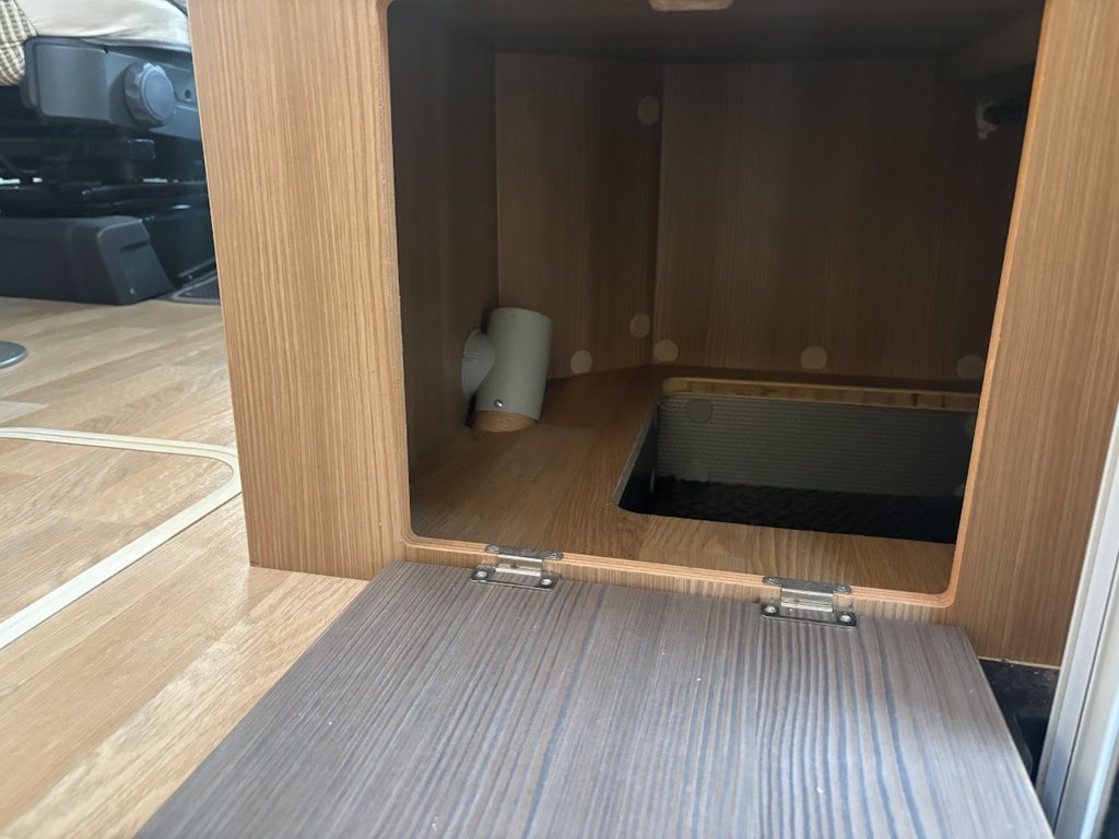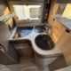 Cuisine en L, Douche indépendante, Lit central, lit pavillon cabine, Salon avant sièges pivotants, Salon en L, WC Cassette.