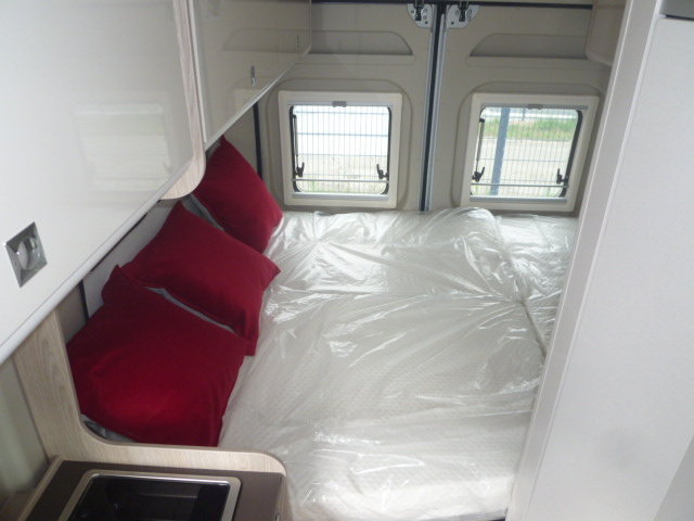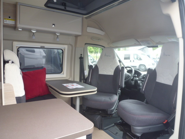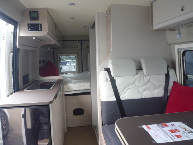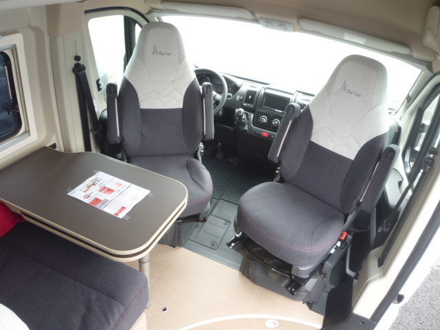 - Disposition : Bac de douche, Lit arrière transversal, Lit toit relevable, Salon avant sièges pivotants, WC Cassette