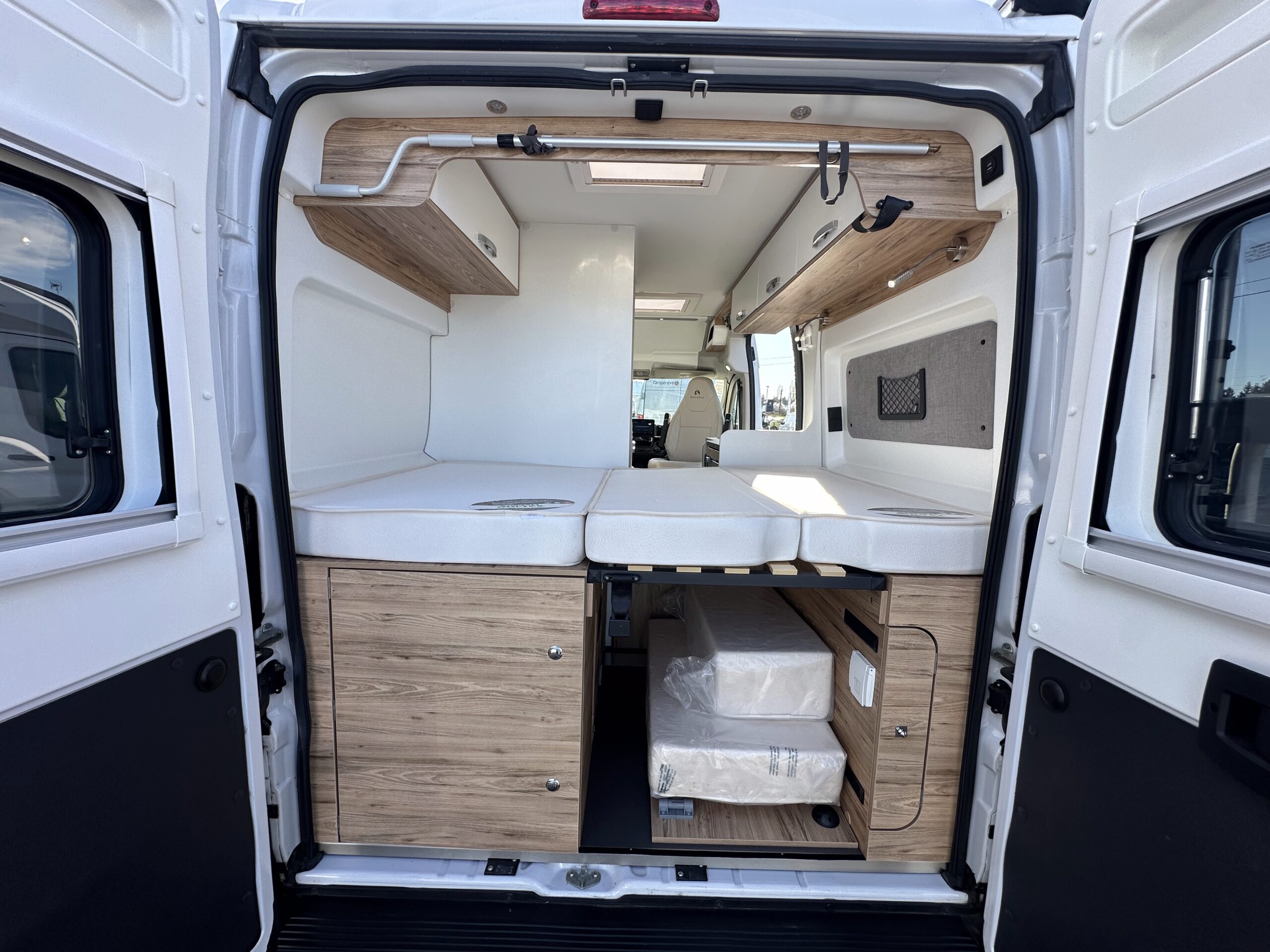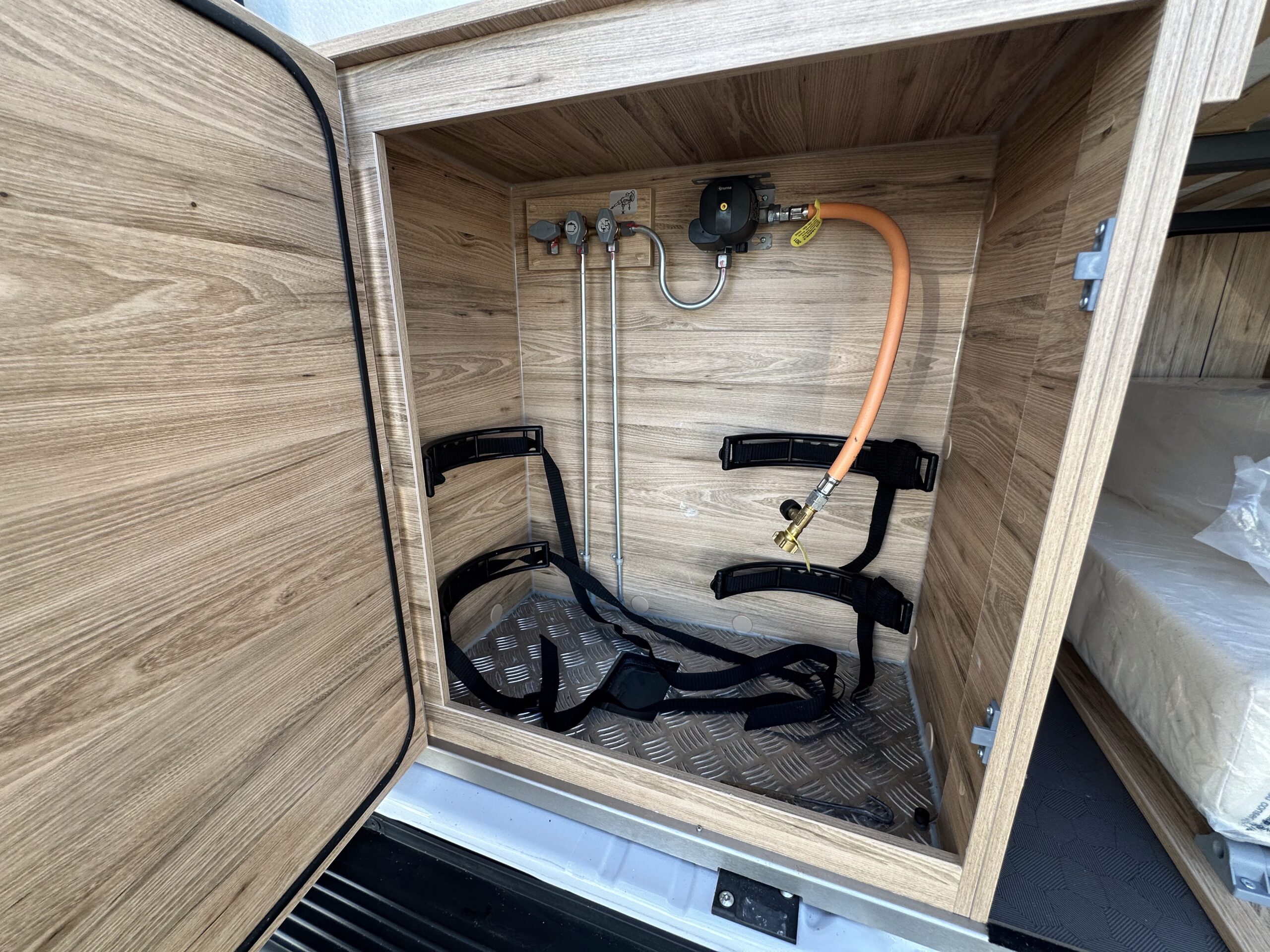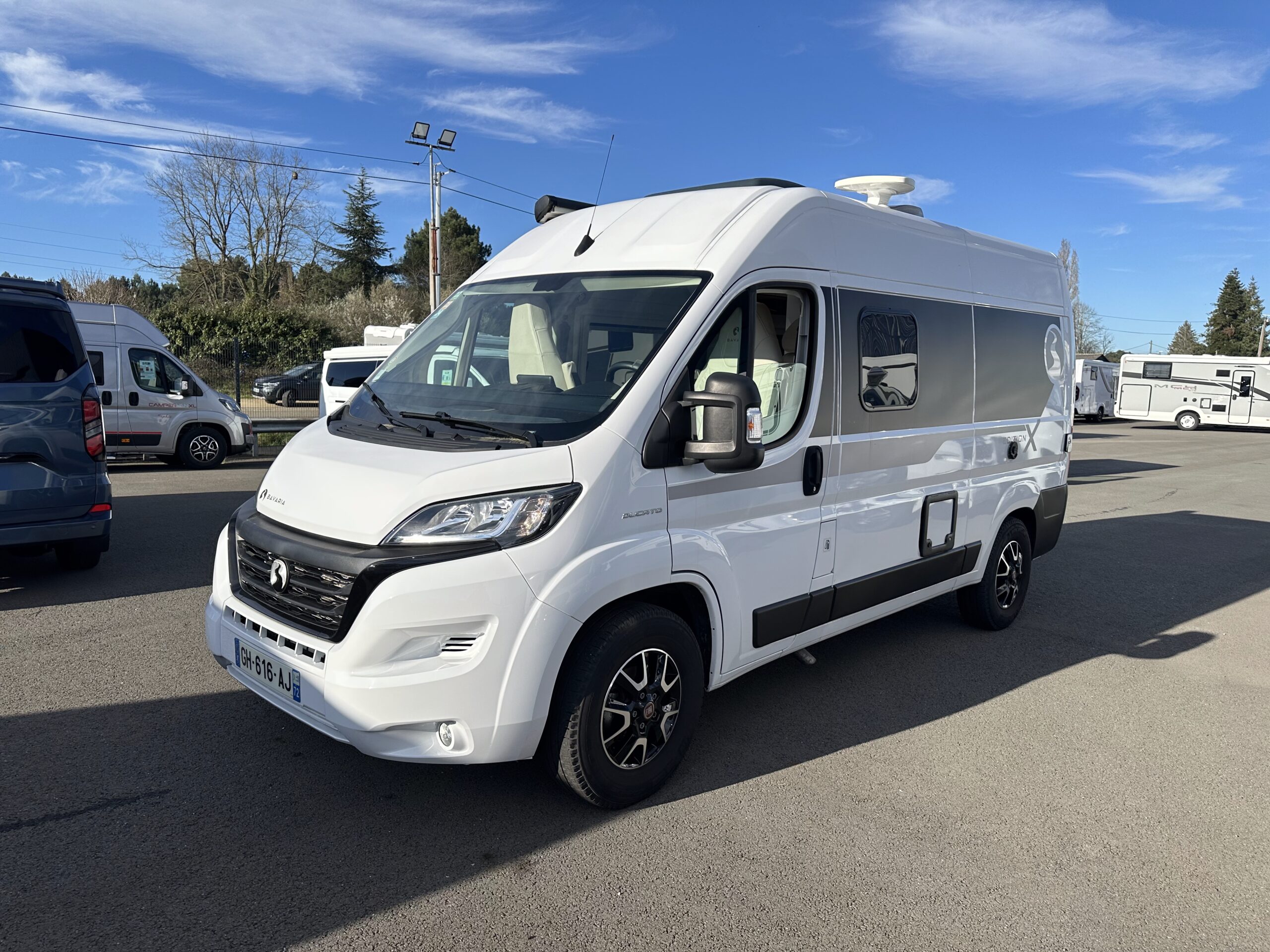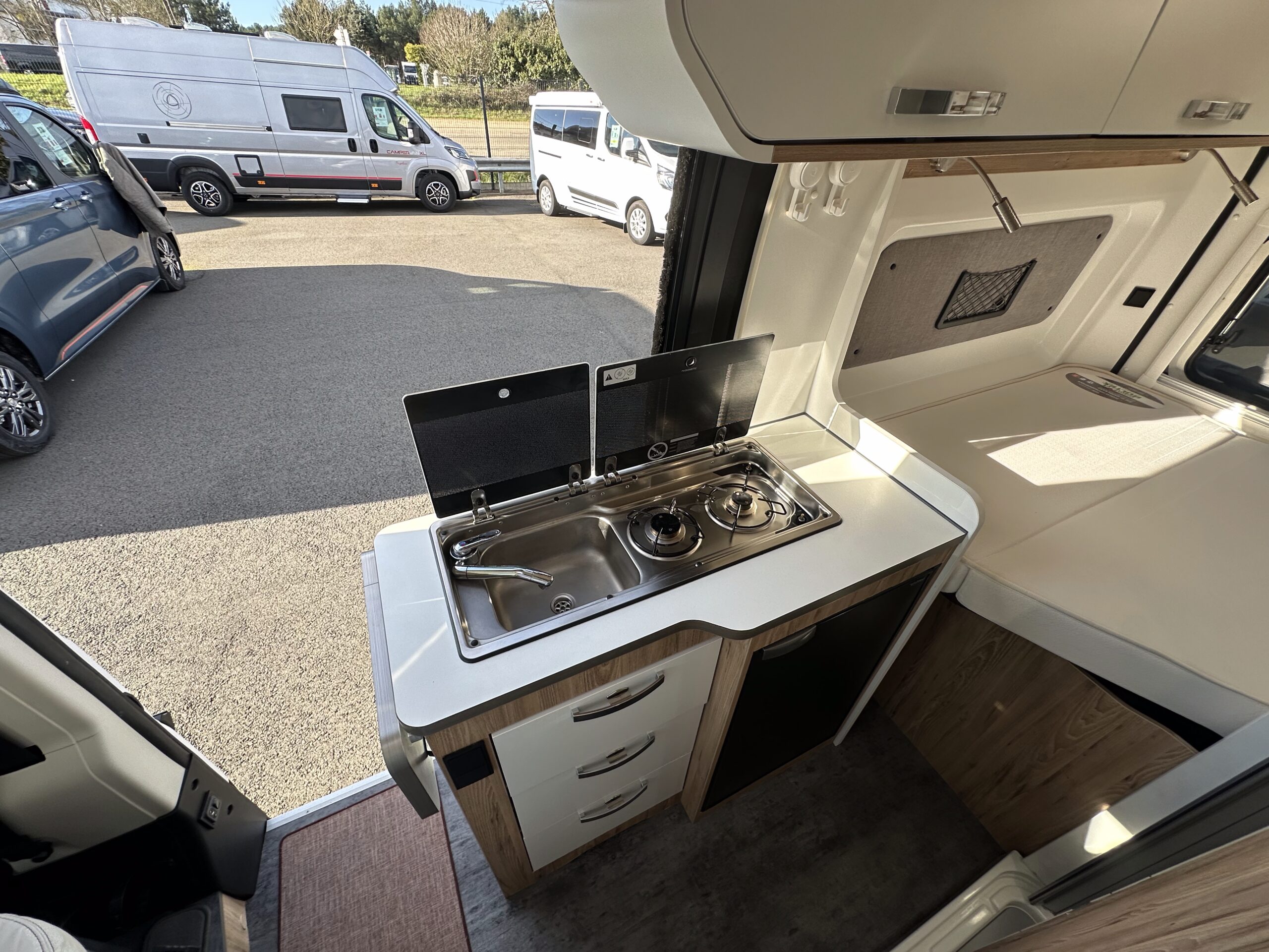 - Disposition : Douche indépendante, Lit arrière transversal, lit pavillon, Salon avant sièges pivotants, WC Cassette