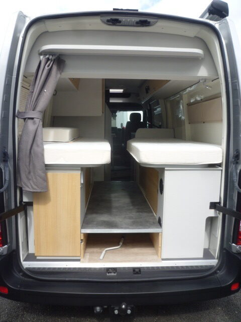- Disposition : Bac de douche, Cuisine en long, Lit dînette avant, Lit toit relevable, Salon avant sièges pivotants, WC Cassette