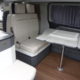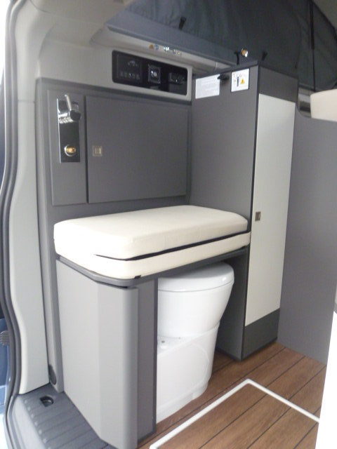Bac de douche, Cuisine en long, Douche extérieur, Lit dînette avant, Lit toit relevable, Salon avant sièges pivotants, WC Cassette.