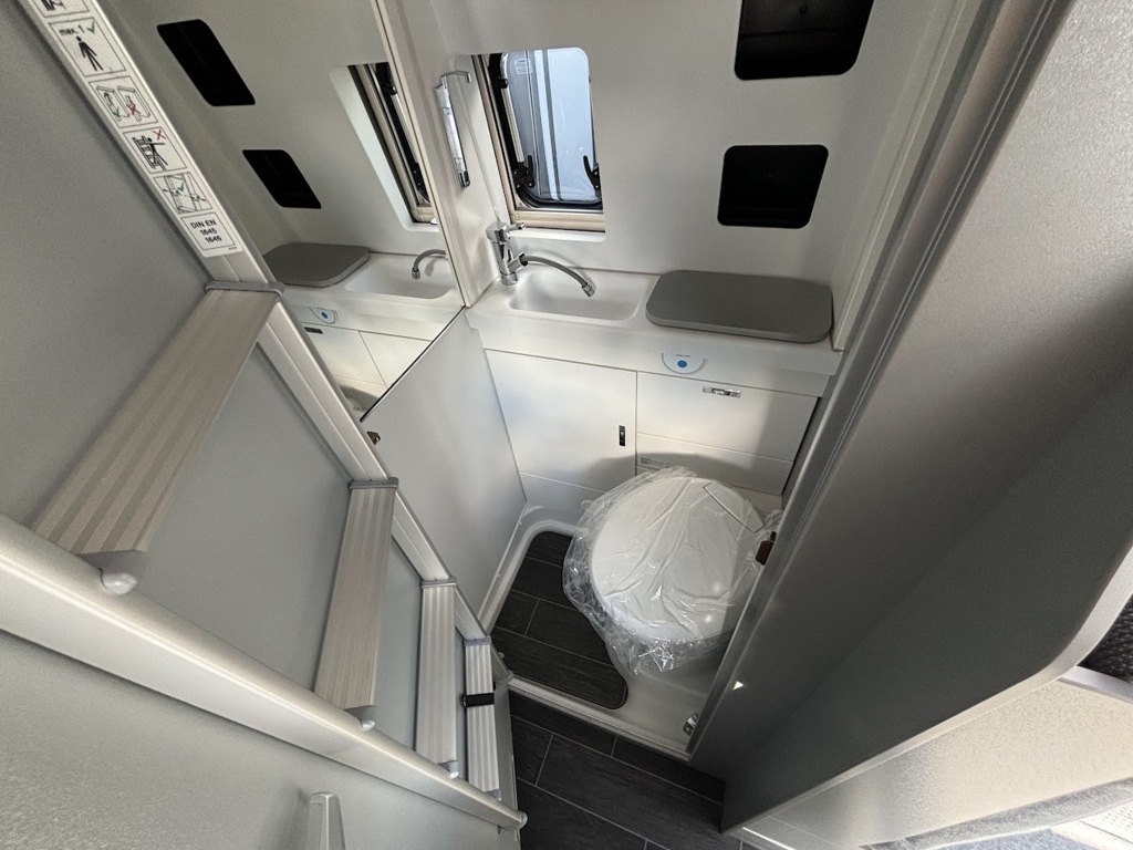 • Disposition : Bac de douche, Cuisine en long, Douche indépendante, Lit arrière longitudinal, Lit dînette avant, Salon avant sièges pivotants, WC Cassette