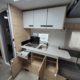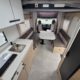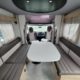 Cuisine en long, Douche indépendante, Lit dînette avant, lit pavillon, Maxi salon, Salon avant banquettes face à face, Salon avant sièges pivotants, Soute, WC Cassette.