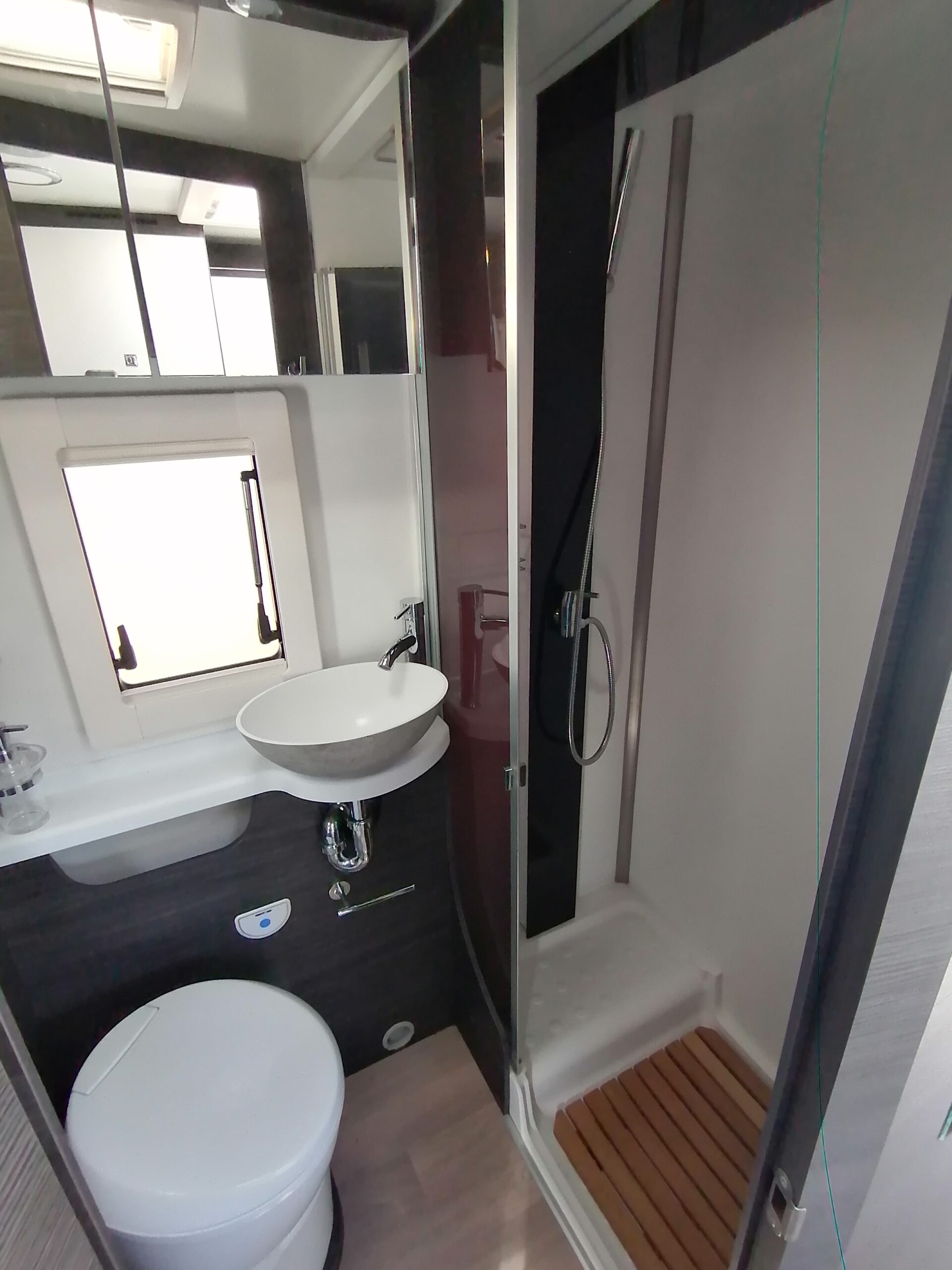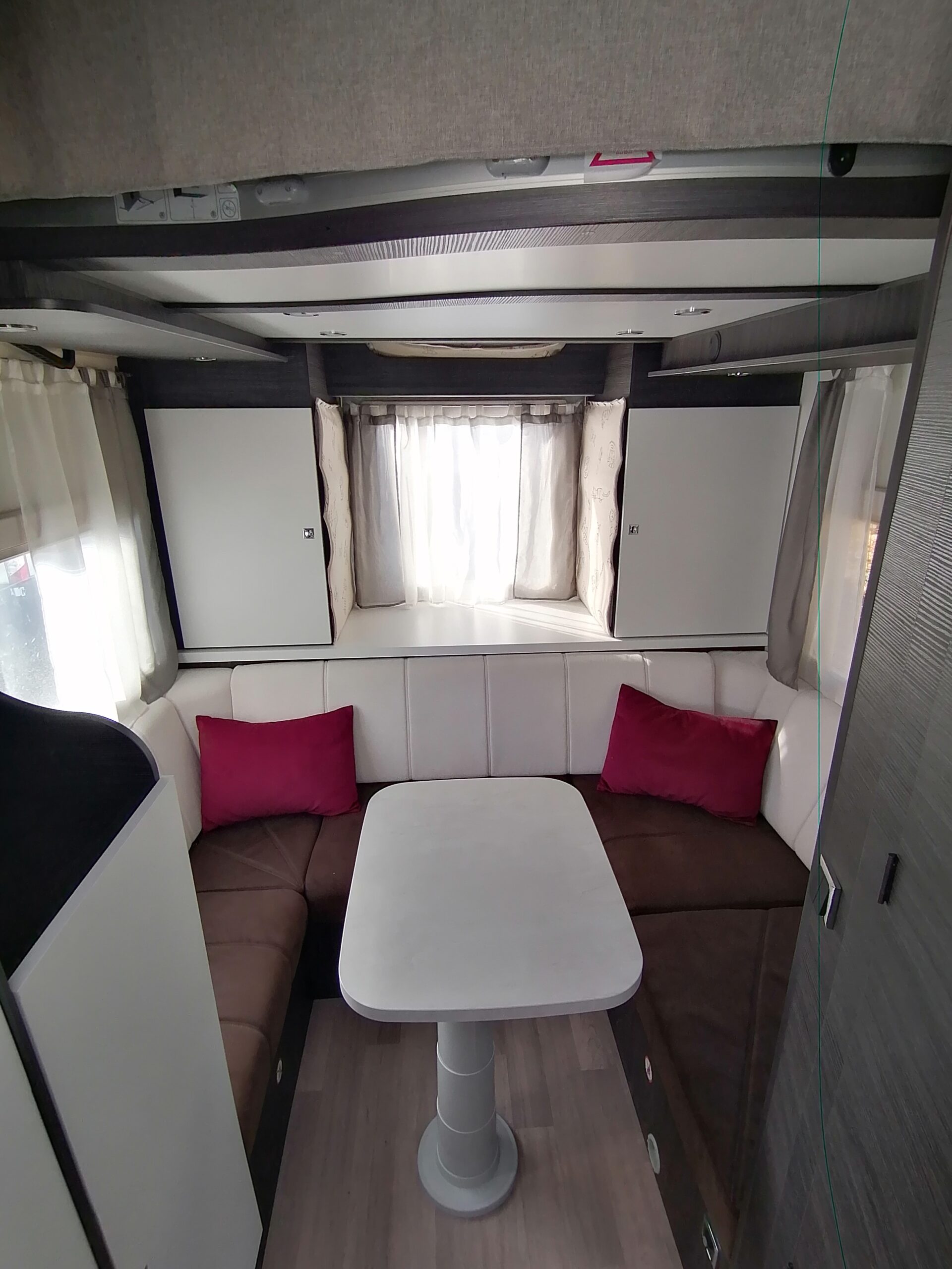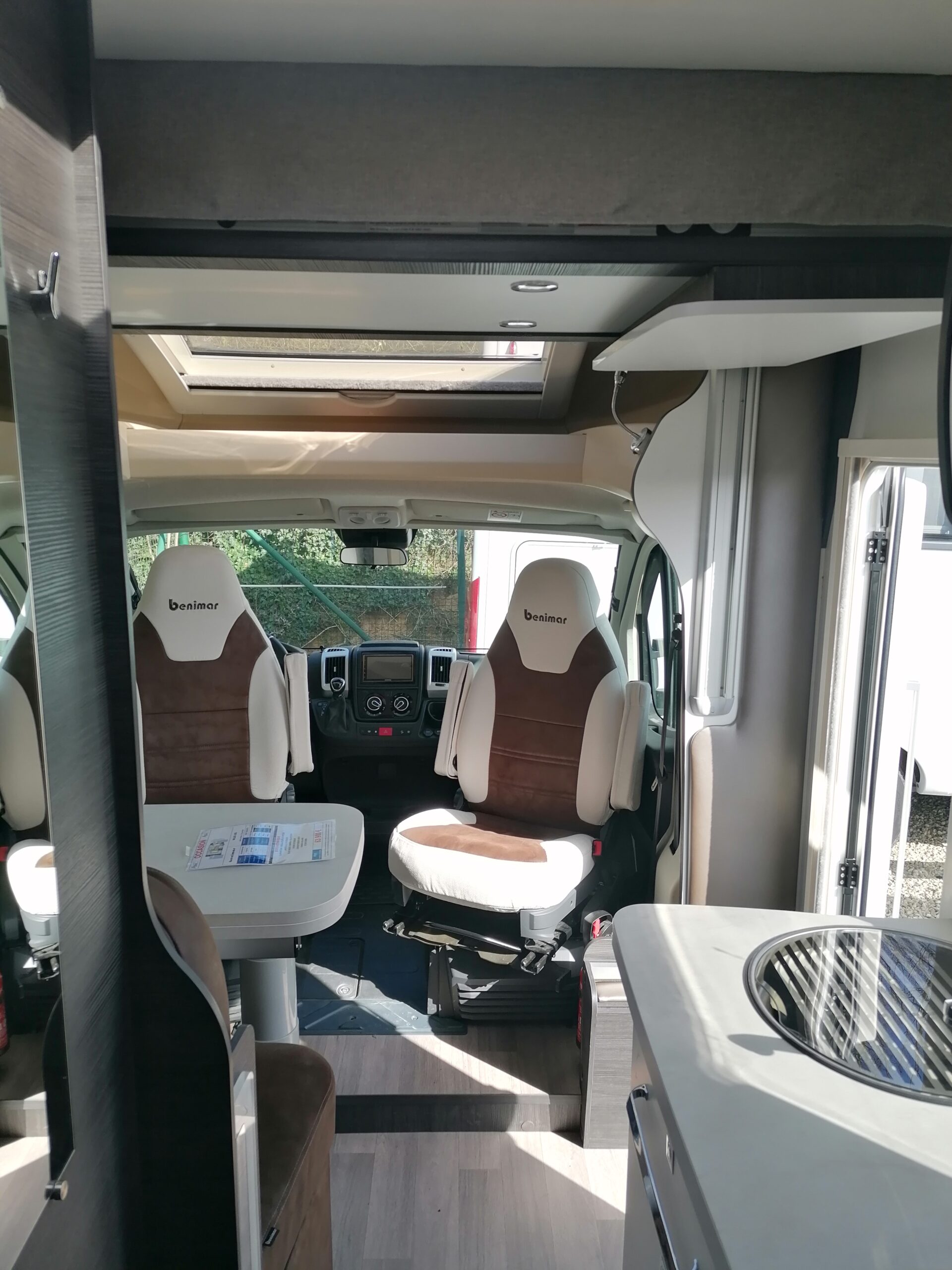 - Disposition : Cuisine en long, Douche à vario, Lit arrière transversal, lit pavillon, Salon avant banquettes face à face, Salon avant sièges pivotants, Soute, WC Cassette
