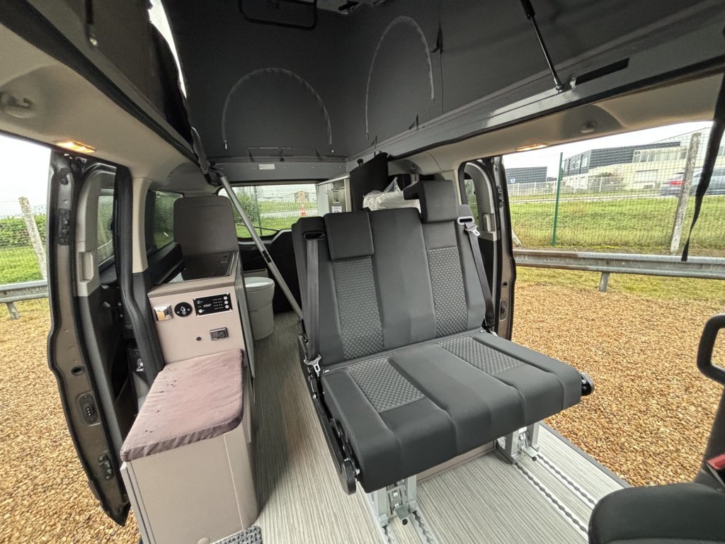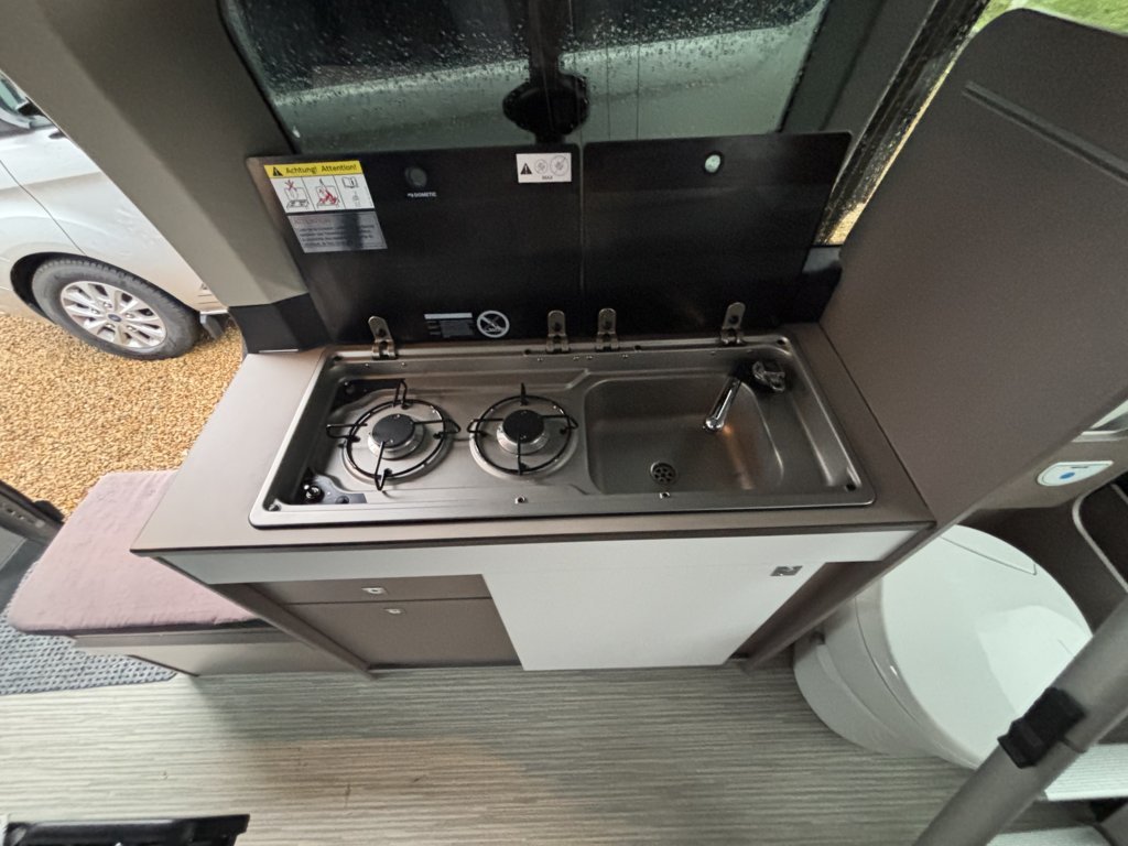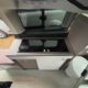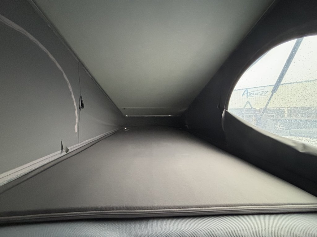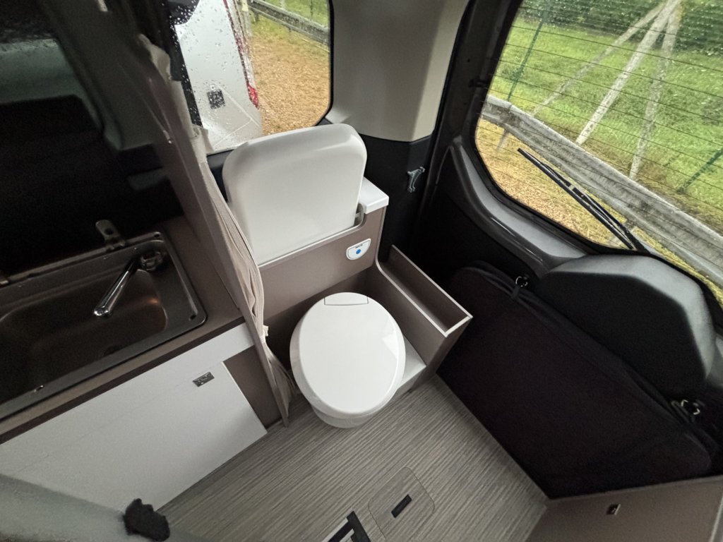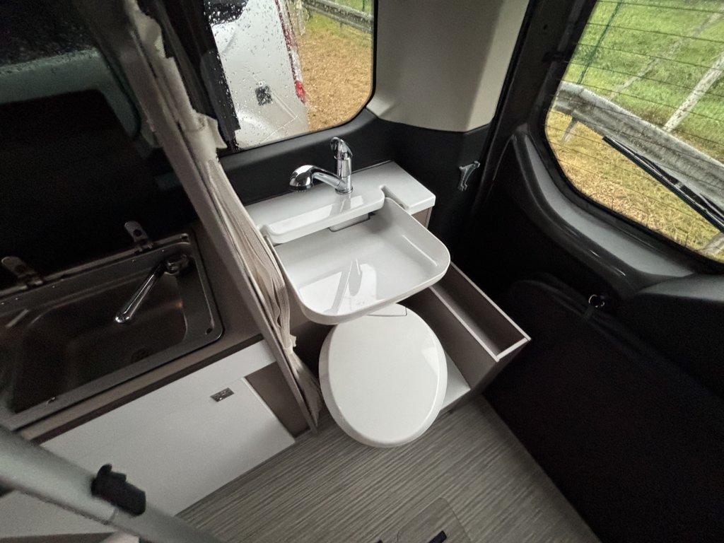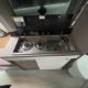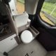 Bac de douche, Cuisine en long, Lit dînette avant, Lit toit relevable, Salon avant sièges pivotants, WC Cassette.
