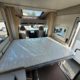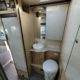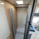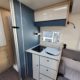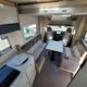 Cuisine en long, Douche indépendante, Lit dînette avant, lit pavillon, Salon avant banquettes face à face, Salon avant sièges pivotants, WC Cassette.
