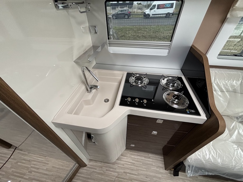 Jantes alu 16, Chassis alko, Porte cellule XL, Multimedia 9″, reservoir gazoil 90L, reservoir eau propre 145L, reservoir eau sale 135L, Chauffage combi 6, Double plancher, Boite automatique : DE SERIE