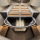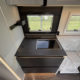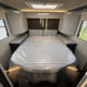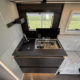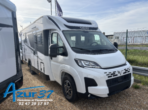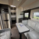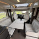 Cuisine en long, Douche indépendante, Grande soute, Lit central, lit pavillon, Salon avant banquettes face à face, Salon avant sièges pivotants, Soute réglable en hauteur, WC Cassette.
