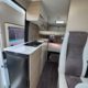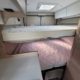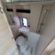 Bac de douche, Cuisine en long, Douche modulable, Lit arrière transversal, lit superposés, Salon avant sièges pivotants, WC Cassette.