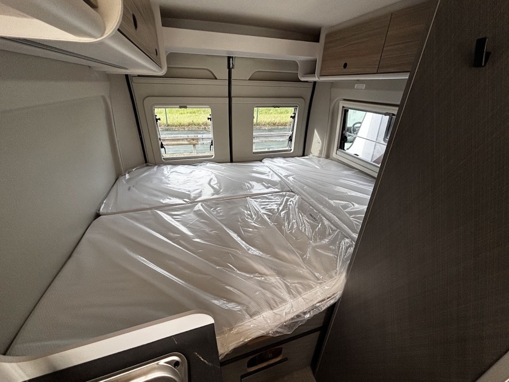 Cuisine en long, Douche modulable, Lit arrière transversal, Salon avant sièges pivotants, WC Cassette.