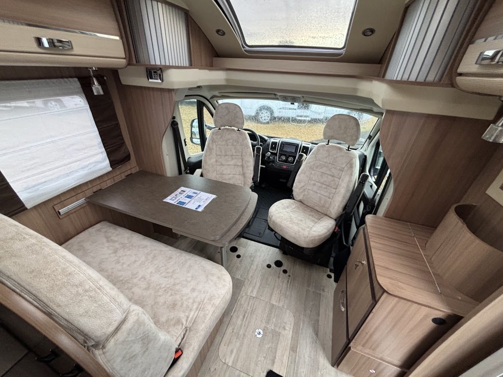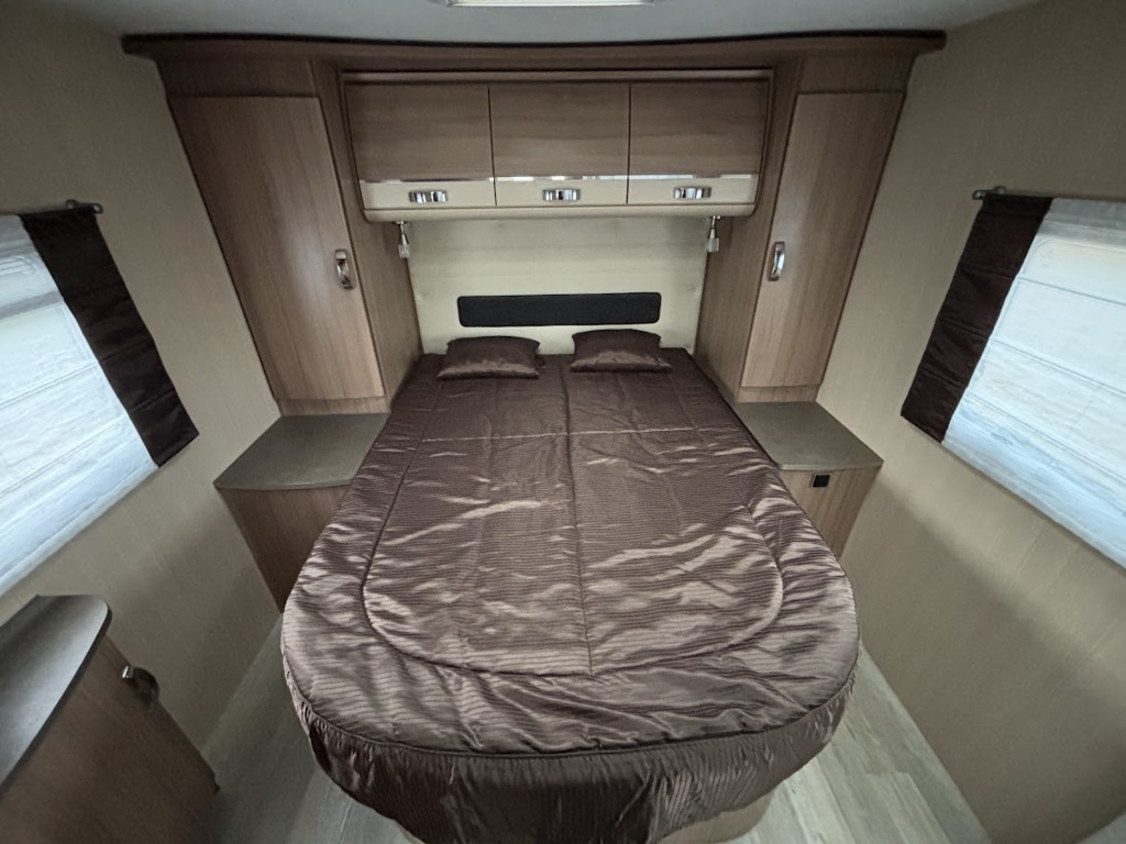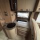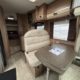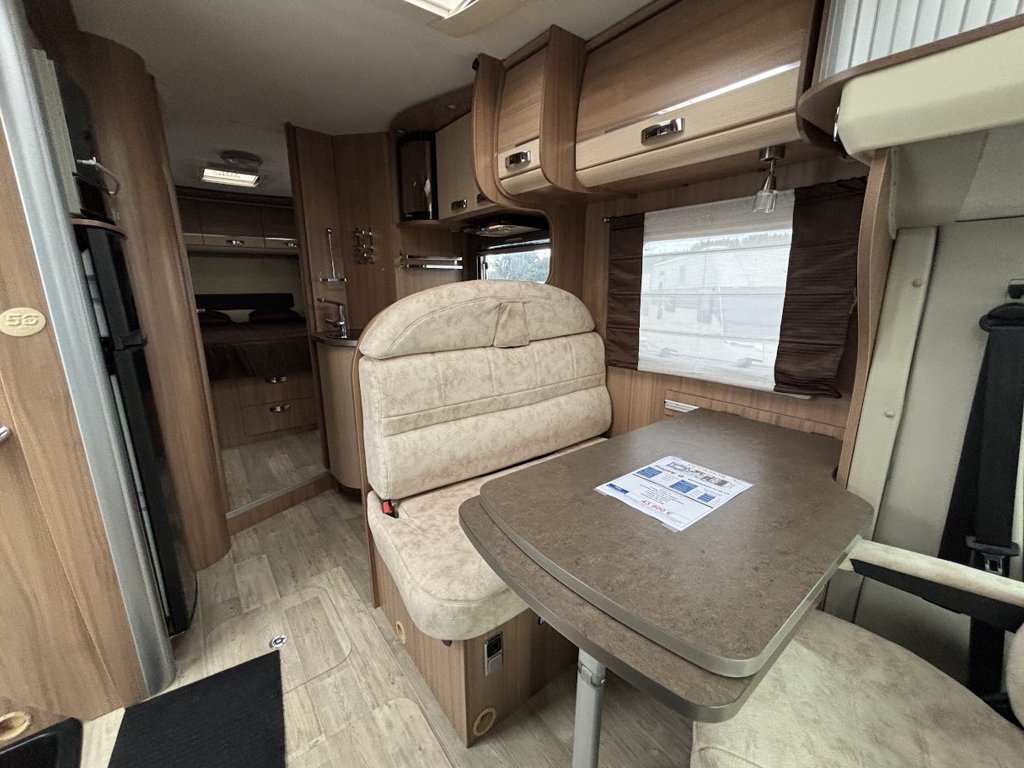 Cuisine en L, Douche indépendante, Lit central, Lit dînette avant, Salon avant sièges pivotants, Salon en L, WC Cassette.
