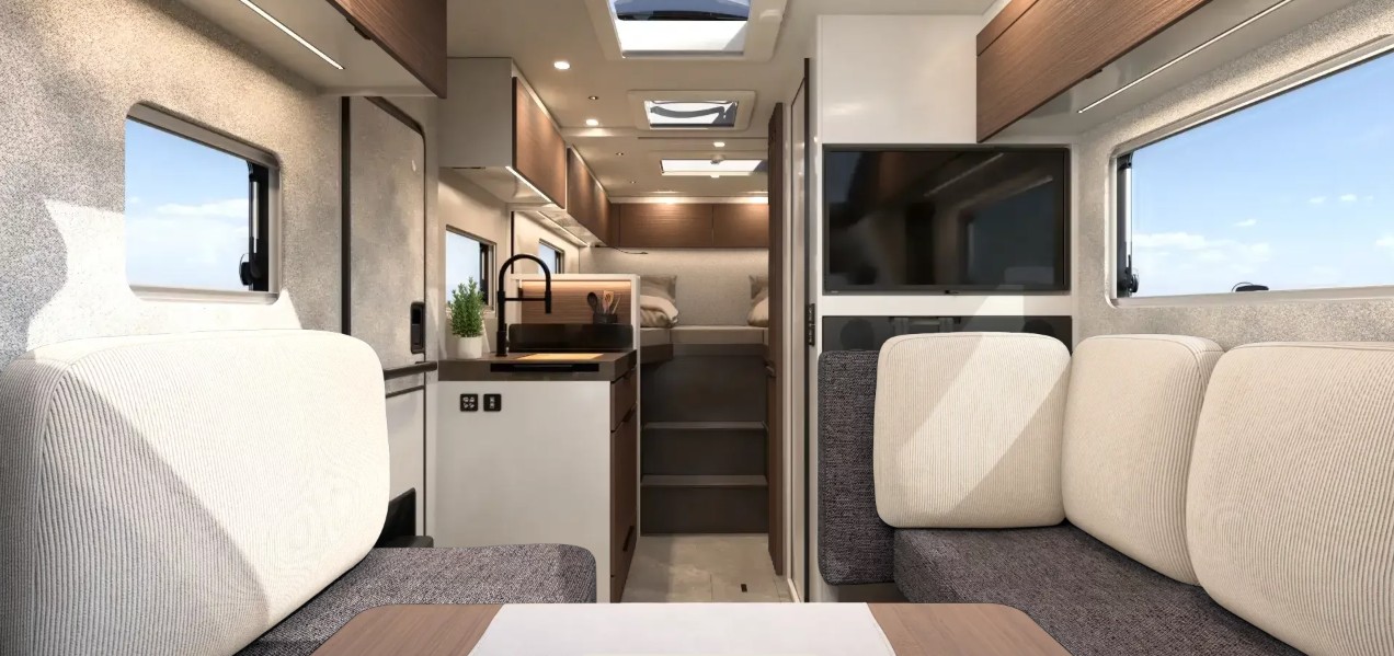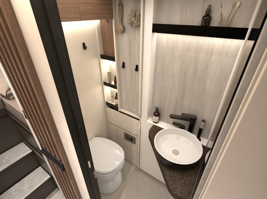 – PACK complète sélection cellule : Revêtement des sièges de cabine, Réservoir d’eaux usées, isolé ,Prise supplémentaire dans placard de pav, Store extérieur (manuel) 3,5 m, laqué bl, Baies avec cadre, Porte garage, côté conducteur, Pieds en bois pour le bac à douche, Miroir avec patères, Multimedia Paket Compact : de série