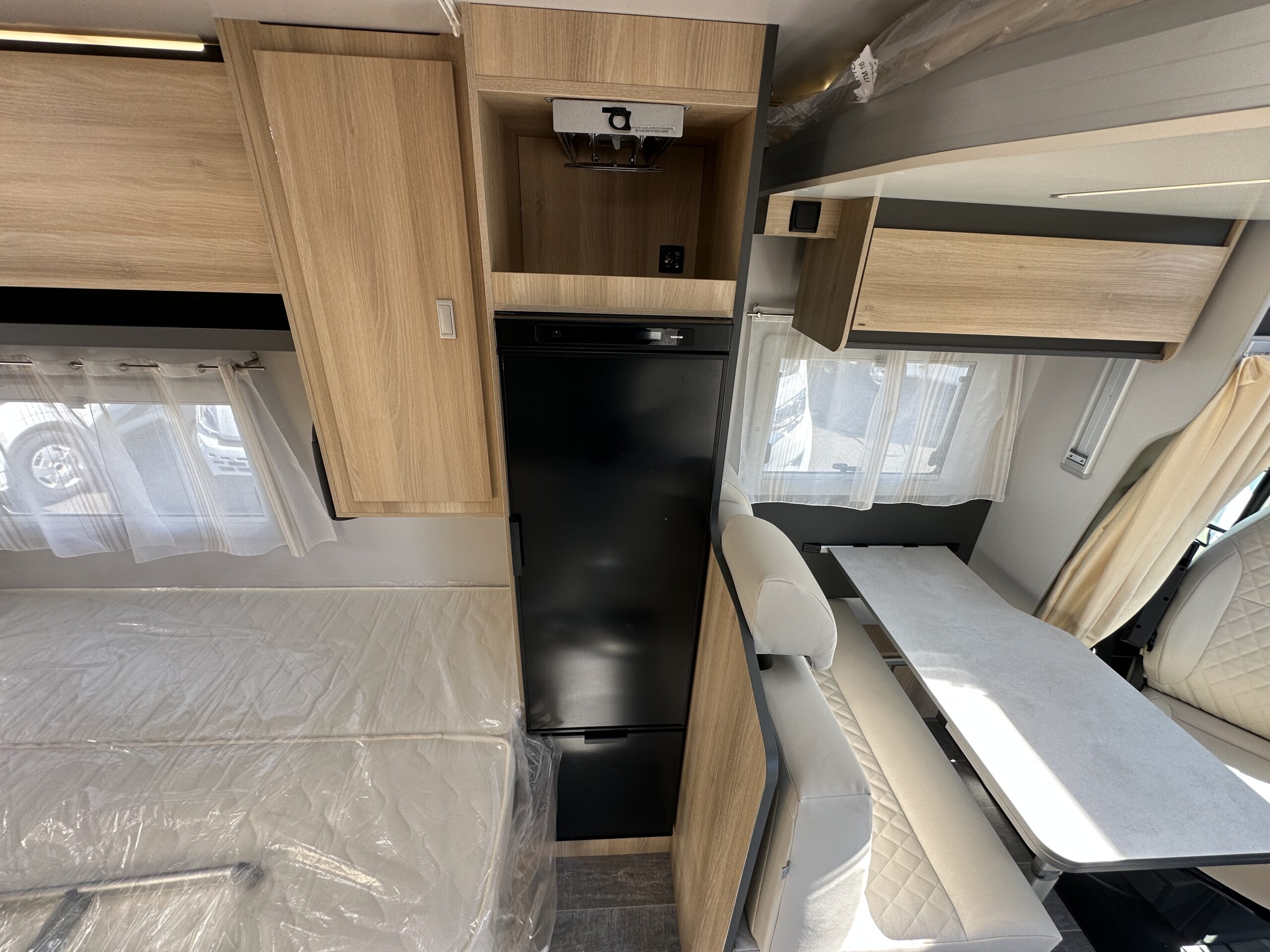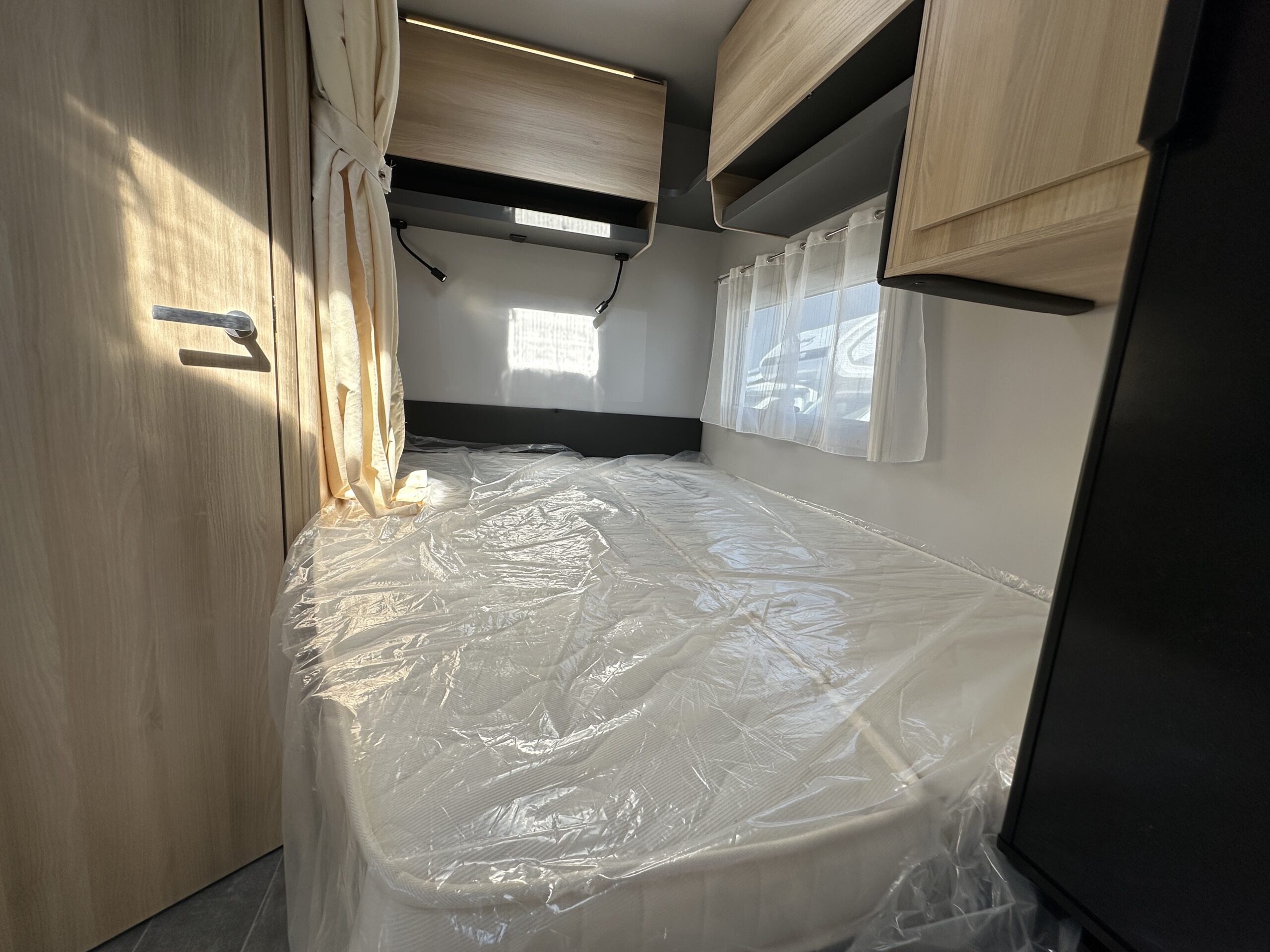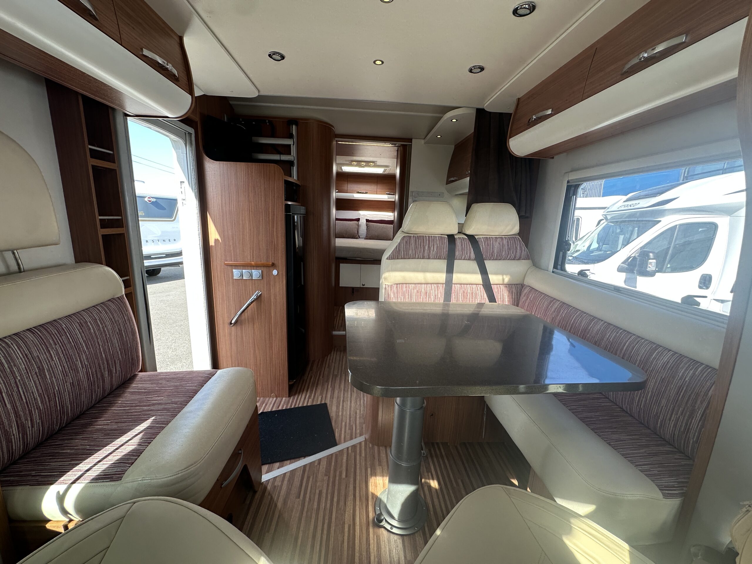 - Disposition : Cuisine en long, Douche à vario, Grande soute, Lit dînette avant, lit jumeaux, Salon avant sièges pivotants, WC Cassette