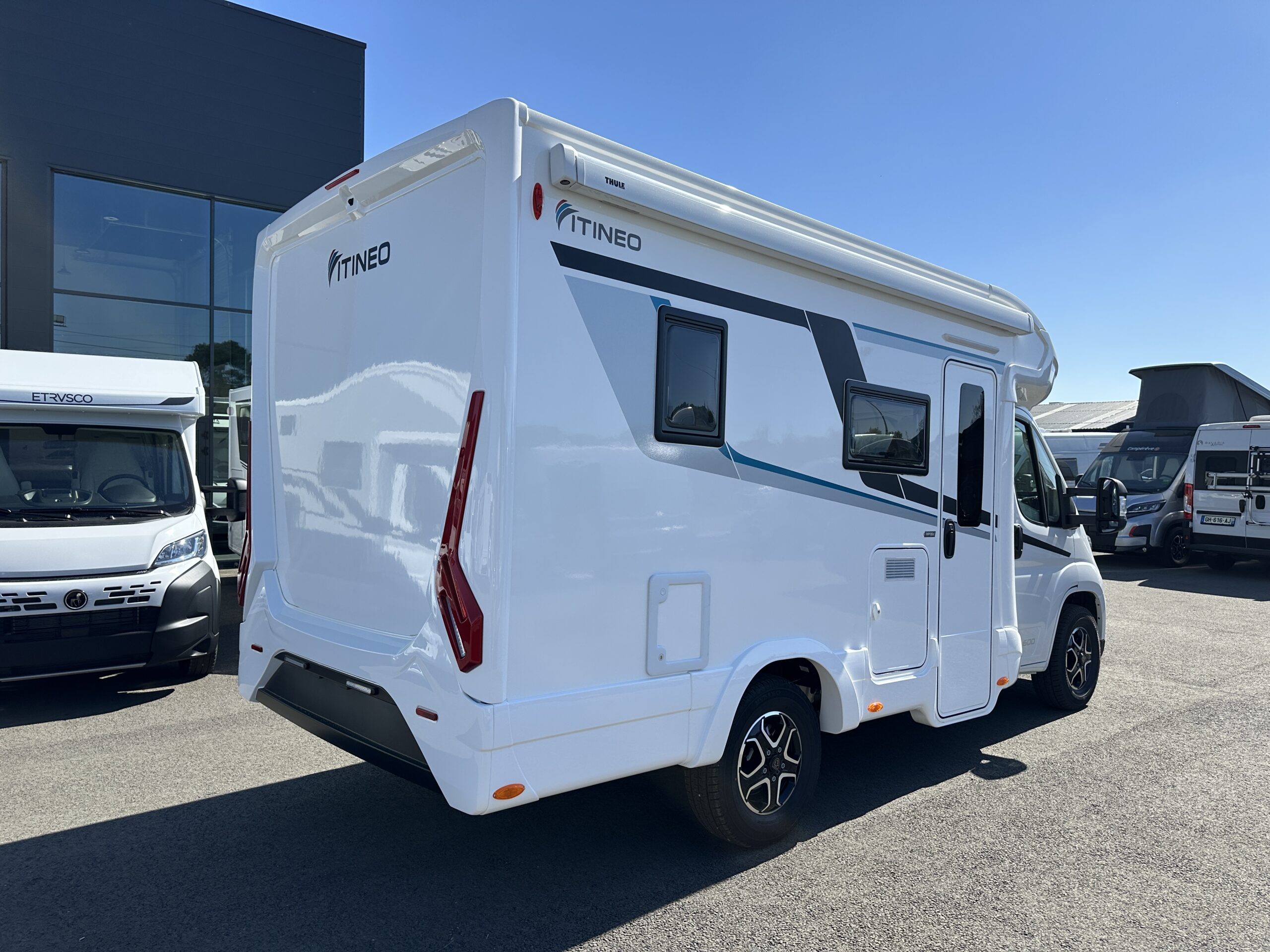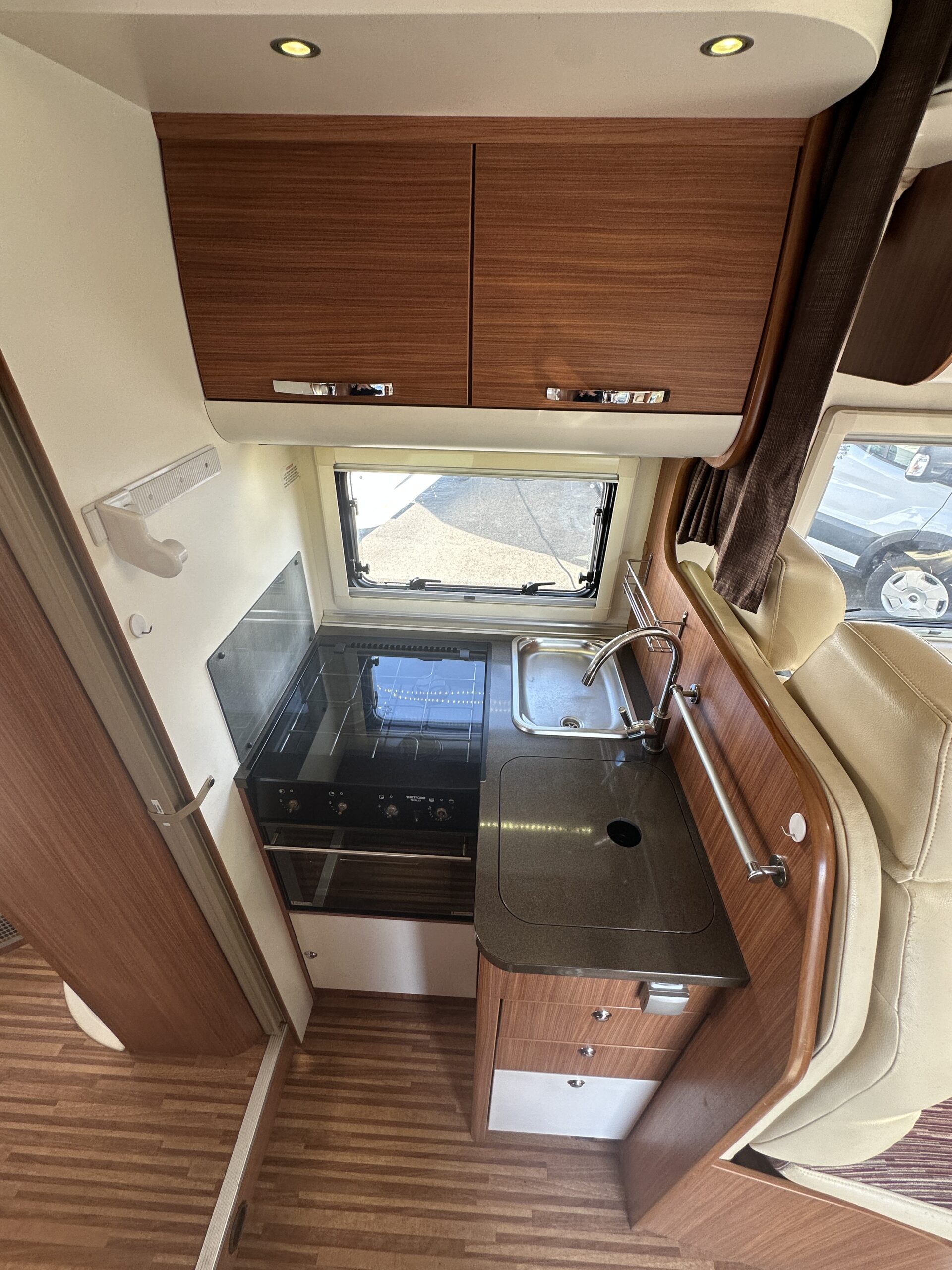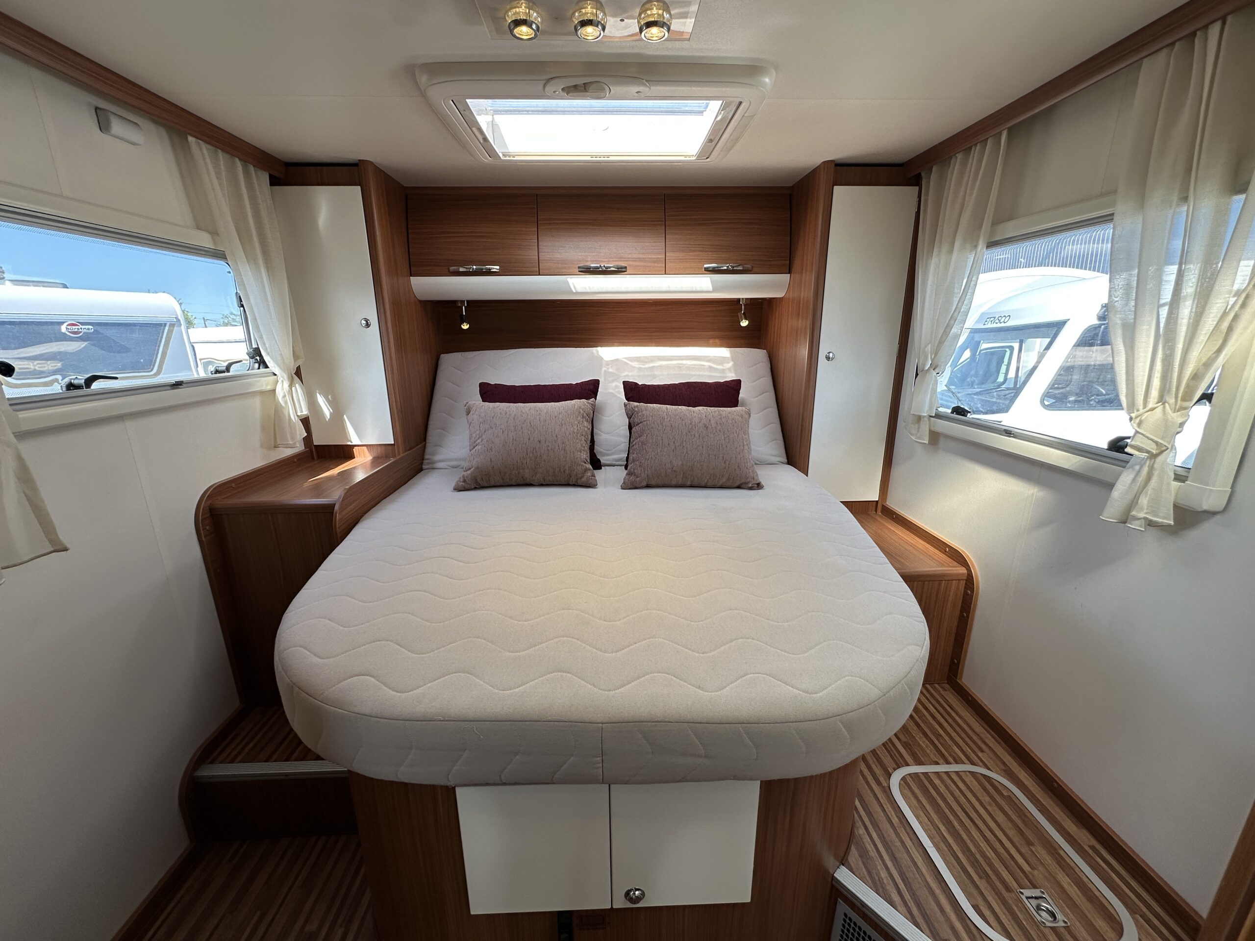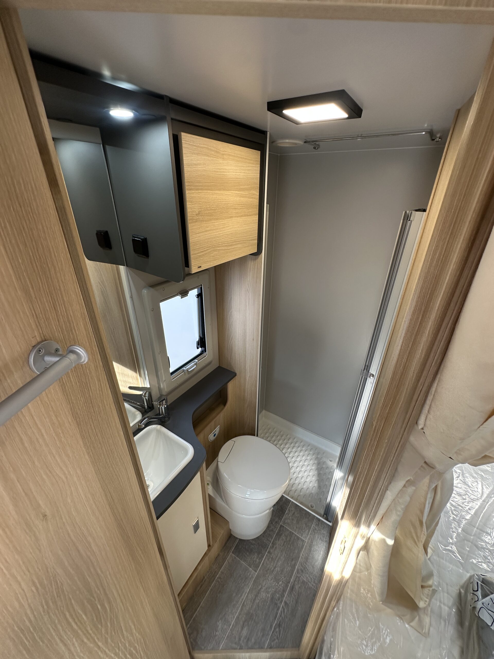 - Disposition : Cuisine en long, Douche à vario, Grande soute, Lit dînette avant, lit jumeaux, Salon avant sièges pivotants, WC Cassette