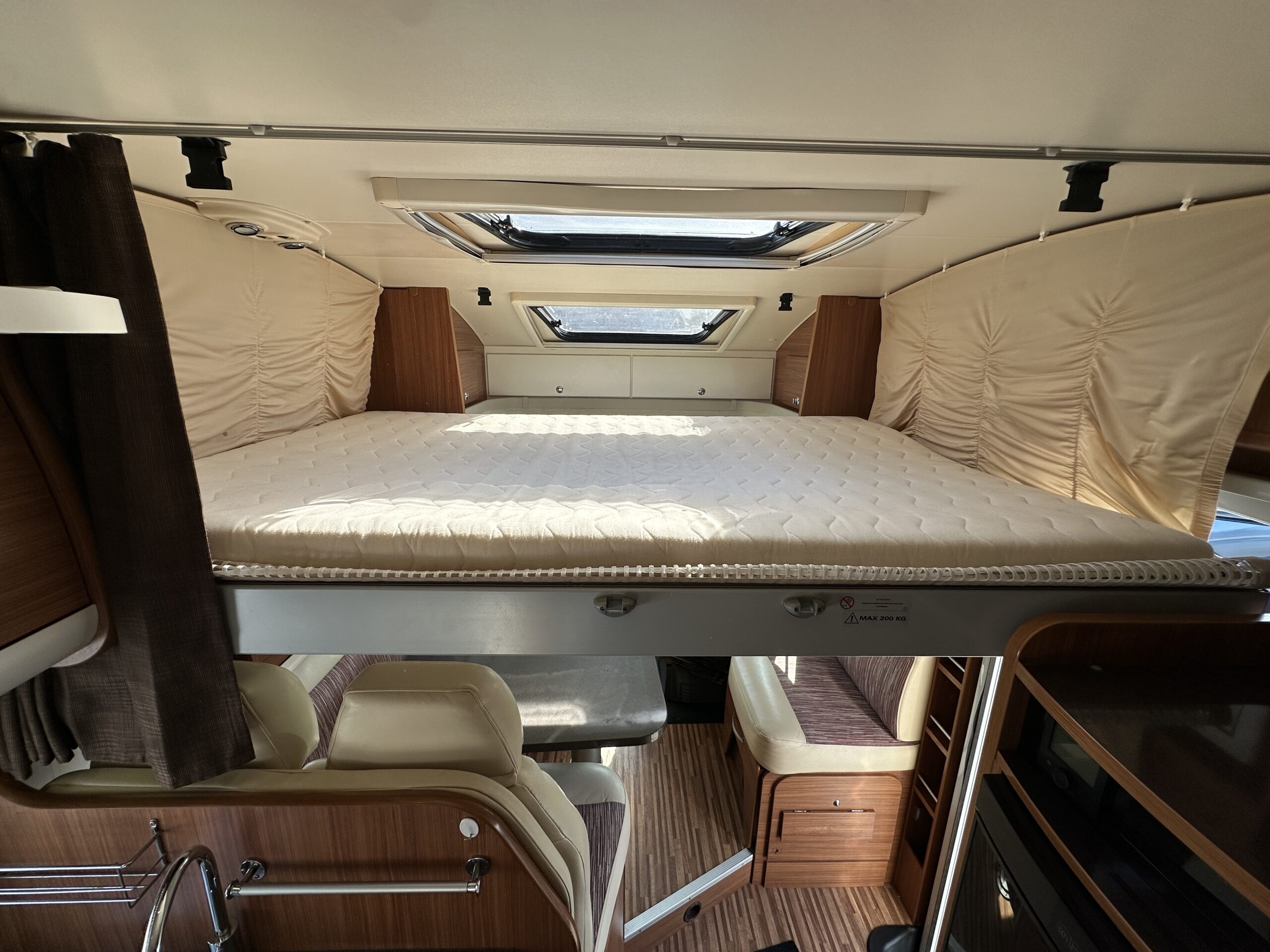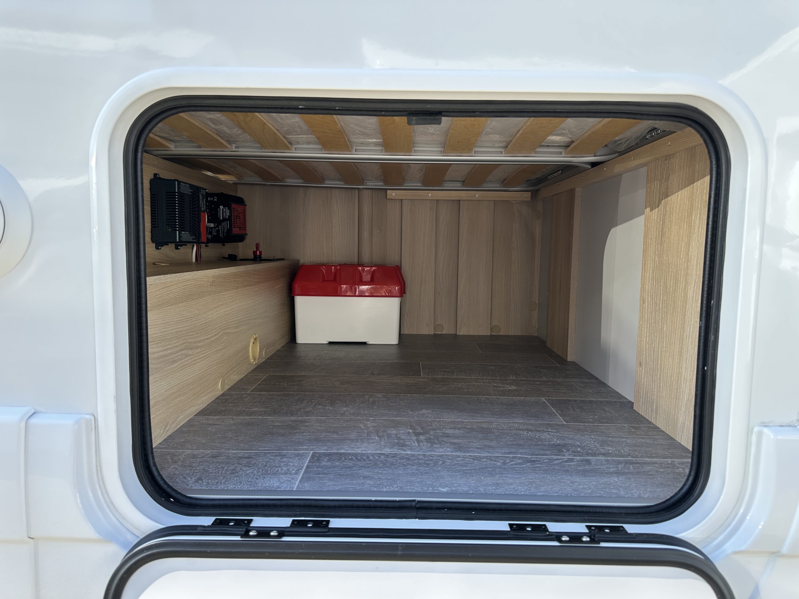 Sélection complète de cellule : Réservoir d’eaux usées, isolé, Store extérieur 4 m, Lanterneau panoramique de cabine, Câble TV 12V avec support TV, housse de sièges,