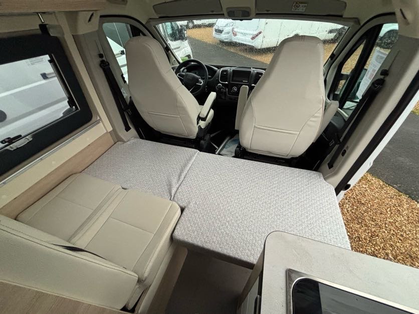 - Disposition : Douche à vario, Lit dînette avant, lit jumeaux, Salon avant sièges pivotants, WC Cassette